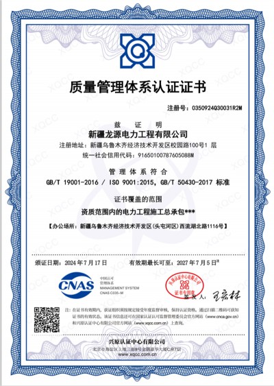 質(zhì)量管理體系認證證書